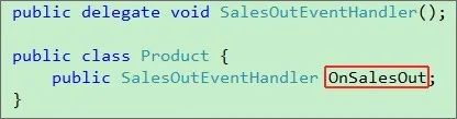 委托以EventHandler作为后缀命名,例如 SalesOutEventHandler。