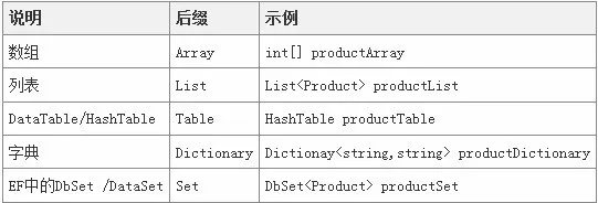 凡符合下表所列的集合类型,应添加相应的后缀。