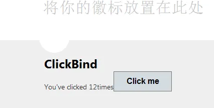 <h2>ClickBind</h2> <div> You've clicked <span data-bind="text: numberOfClicks"></span> times <button data-bind="click: incrementClickCounter">Click me</button> </div> <script type="text/javascript" src="~/Scripts/knockout-2.3.0.debug.js"></script> <script type="text/javascript"> var viewModel = { numberOfClicks: ko.observable(0), incrementClickCounter: function() { var previousCount = this.numberOfClicks(); this.numberOfClicks(previousCount + 1); } }; ko.applyBindings(viewModel); </script>