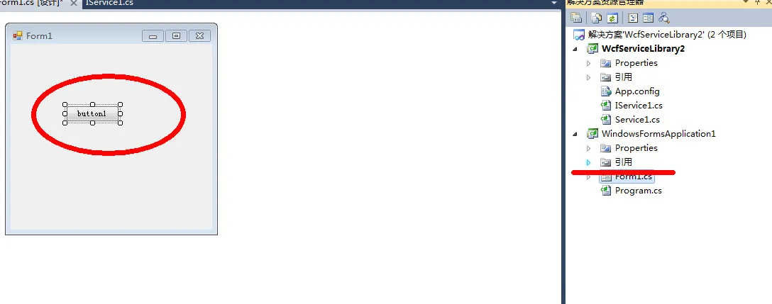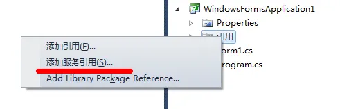 添加了一个按钮用于进行调用WCF服务的,右侧有个引用可右击