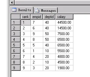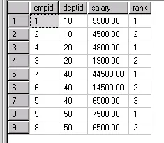 这是想要得到的结果第二列根据部门进行分组,第三列工资由高到低,rank进行部门内部的排列