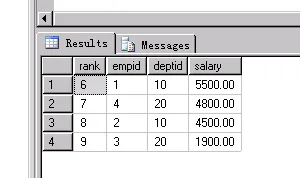 第二页为select * from (SELECT Row_Number() OVER (ORDER BY salary desc) rank,* FROM employee ) as NewTable where rank between 6 and 10