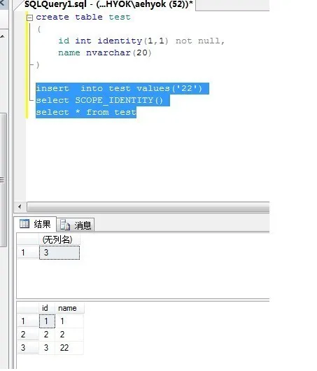 发现 SELECT SCOPE_IDENTITY() 即为该自动增长ID