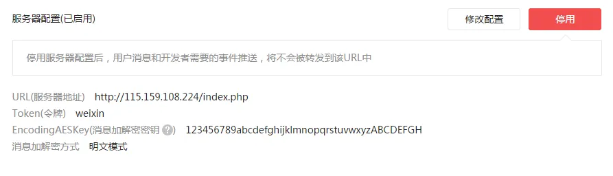 <?php define("TOKEN", "weixin"); $wechatObj = new wechatCallbackapiTest(); if (isset($_GET['echostr'])) { $wechatObj->valid(); }else{ $wechatObj->responseMsg(); } class wechatCallbackapiTest { public function valid() { $echoStr = $_GET["echostr"]; if($this->checkSignature()){ header('content-type:text'); echo $echoStr; exit; } } private function checkSignature() { $signature = $_GET["signature"]; $timestamp = $_GET["timestamp"]; $nonce = $_GET["nonce"]; $token = TOKEN; $tmpArr = array($token, $timestamp, $nonce); sort($tmpArr, SORT_STRING); $tmpStr = implode( $tmpArr ); $tmpStr = sha1( $tmpStr ); if( $tmpStr == $signature ){ return true; }else{ return false; } } public function responseMsg() { $postStr = $GLOBALS["HTTP_RAW_POST_DATA"]; if (!empty($postStr)){ $postObj = simplexml_load_string($postStr, 'SimpleXMLElement', LIBXML_NOCDATA); //获取数据 $fromUsername = $postObj->FromUserName; $toUsername = $postObj->ToUserName; $keyword = trim($postObj->Content); $time = time(); $textTpl = "<xml> <ToUserName><![CDATA[%s]]></ToUserName> <FromUserName><![CDATA[%s]]></FromUserName> <CreateTime>%s</CreateTime> <MsgType><![CDATA[%s]]></MsgType> <Content><![CDATA[%s]]></Content> <FuncFlag>0</FuncFlag> </xml>"; if($keyword == "?" || $keyword == "?") //获取用户信息 { $msgType = "text"; $contentStr = date("Y-m-d H:i:s",time()); // 回复的内容 $resultStr = sprintf($textTpl, $fromUsername, $toUsername, $time, $msgType, $contentStr); echo $resultStr; } }else{ echo ""; exit; } } } ?>