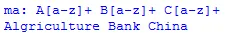 import re def expand_abbr(sen, abbr): lenabbr = len(abbr) ma = '' for i in range(0, lenabbr-1): ma += abbr[i] + "[a-z]+" + ' ' + '([a-z]+ )?' ma += abbr[lenabbr-1] + "[a-z]+" print 'ma:', ma ma = ma.strip(' ') p = re.search(ma, sen) if p: return p.group() else: return '' print expand_abbr("Welcome to Algriculture Bank of China", 'ABC')