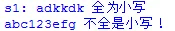 # -*- coding: cp936 -*- import re s1 = 'adkkdk' s2 = 'abc123efg' an = re.search('^[a-z]+$', s1) if an: print 's1:', an.group(), '全为小写' else: print s1, "不全是小写!" an = re.match('[a-z]+$', s2) if an: print 's2:', an.group(), '全为小写' else: print s2, "不全是小写!"
