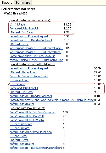 AQTime在[Summary]页签自动对性能数据从Worst Performance(body only)、Worst Performance(with children)和Routine with max hitCount三个方面进行了汇总,这上个方面其实就是上一篇文章我们介绍的Grid里的[Time]、[Time with Children]和[HitCount],很多时候,这个汇总还是很有用的,例如 上一篇 文章里的地雷,在下图第一项汇总结果里就已经表露无遗了,所以推荐大家在分析性能数据的时候,养成总是先从[Summary]页签开始的良好习惯。