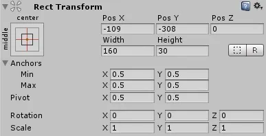 When all the anchor handles are together the fields displayed are Pos X, Pos Y, Width and Height. The Pos X and Pos Y values indicate the position of the pivot relative to the anchors.