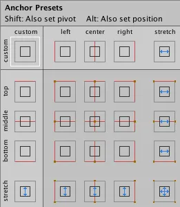The Anchor Presets buttons displays the currently selected preset option if there is one. If the anchors on either the horizontal or vertical axis are set to different positions than any of the presets, the custom options is shown.