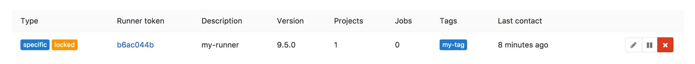 配置好之后,我们就可以在 GitLab 中看到 GitLab Runner 了,示例: