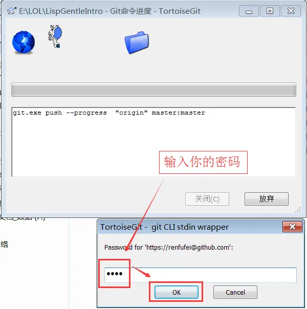 如果你按照上一小节的设置操作,则输入密码以后会记住密码. 密码会明文保存在 C:\Users\Administrator\.git-credentials 这种文件中,请小心使用。
