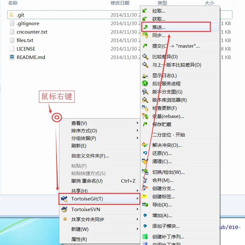 TortoiseGit基本操作将提交到本地的项目推送到在线仓库