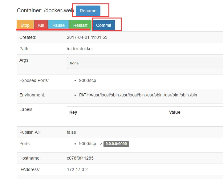 1)Dashboard控制台。点击Running Containers下面活跃的容器,进入容器的管理界面进行相关操作,比如修改容器名,commit提交容器为新的镜像等。