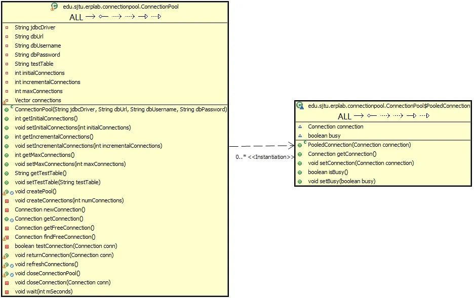 下面首先给出参考1中的代码示例,具体见ConnectionPool.java,修改了部门代码与注释,并该处了一个测试demo,具体见ConnectionPoolDemo.java: