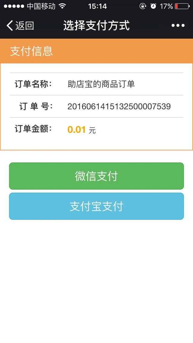 为了让页面好看一些,我没有直接echo输出,而是写了一个页面,pay.html