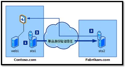 sts1:一个STS,扮演Contoso.com中的声明提供方角色,可发出应用程序 (web1) 预期的声明。它已经与Fabrikam.com建立信任,并被配置为允许访问Fabrikam员工。