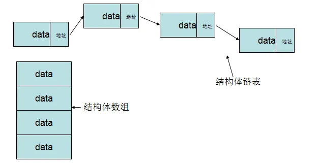 我可以定义一个结构体,即存放本身的数据,又存放上一个结构体的内存地址,这样就多个结构体就可以不用连续的存放在内存中了,这就叫"链表"