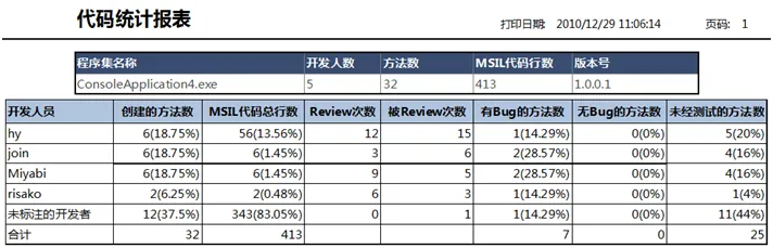 由于对客户端程序集添加了如上的特性信息的,所以,通过分析程序集,我们可以很方法得到如下的报表: