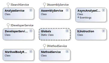 XP.CodeStatistics是本工具的核心模块,包括了四个功能:获取程序集、获取IL代码、统计分析。核心类如下,本文不再赘述,请直接查看源码。