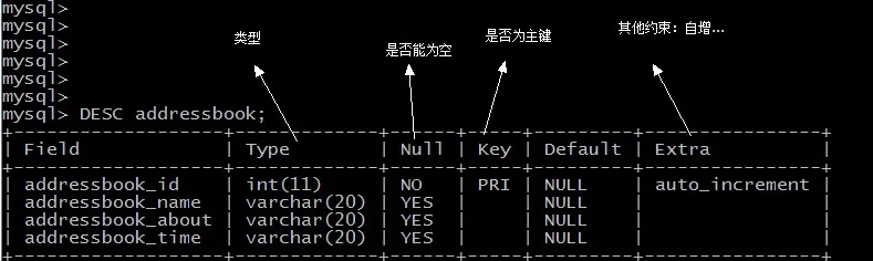 DESC addressbook;