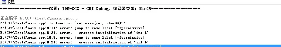 提示跳过了变量b的初始化过程。对于一个局部变量,它的作用域为它所定义的地方到它所在的语句块结束为止,那么对于变量b,它所在的最小语句块为switch{}块,那么也就说在case 0后面的部分,变量b都是可见的(注意在case 0之前变量b是无法访问的)。考虑这样一种情况,当a的值为1,那么程序就跳到case 1执行,此时b虽然可以访问,但是跳过了它的初始化过程。而如果在定义变量的同时进行了初始化,表明程序员希望初始化这个变量,但是此时跳过了该变量的初始化,就可能导致程序出现程序员无法意料的情况,因此编译器为了避免跳过这样的初始化而造成无法预料的结果,就对该语句进行报错。