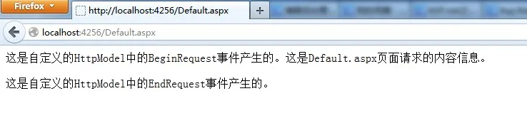 "这是自定义的HttpModel中的BeginRequest事件产生的。"