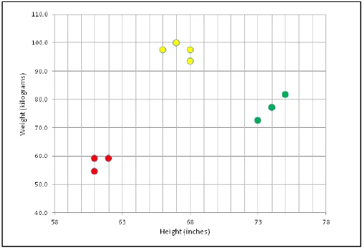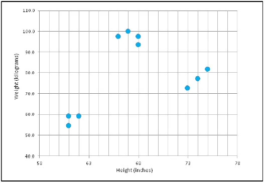 例如,有如下包含 10 条数据的集合。集合中每项描述了一个人的身高(Height: inches)和体重(Weight: kilograms)。