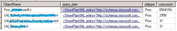 SELECT TOP (25) OBJECT_NAME(objectid) AS [ObjectName] ,query_plan ,cp.objtype ,cp.usecounts FROM sys.dm_exec_cached_plans AS cp WITH (NOLOCK) CROSS APPLY sys.dm_exec_query_plan(cp.plan_handle) AS qp WHERE CAST(query_plan AS NVARCHAR(MAX)) LIKE N'%MissingIndex%' AND dbid = DB_ID() ORDER BY cp.usecounts DESC OPTION (RECOMPILE);