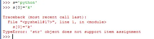 2)Python中的字符串一旦声明,是不能进行更改的,即不能通过对某一位置重新赋值改变内容。