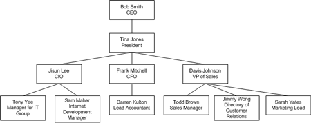 我们知道像家谱族谱、公司组织结构等都是以树结构的形式组织数据。例如下图中所展示的公司组织结构图。