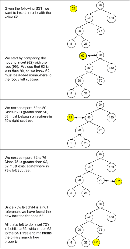 当合适的节点找到时,该算法结束。从而使新节点被放入 BST 中成为某一父节点合适的孩子节点。