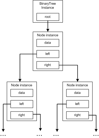 我们已经了解了数组是将元素连续地排列在内存当中,而二叉树却不是采用连续的内存存放。实际上,通常 BinaryTree 类的实例仅包含根节点(Root Node)实例的引用,而根节点实例又分别指向它的左右孩子节点实例,以此类推。所以关键的不同之处在于,组成二叉树的节点对象实例可以分散到 CLR 托管堆中的任何位置,它们没有必要像数组元素那样连续的存放。