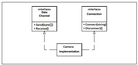 1 public interface Camera 2 { 3 void Connect(string host); 4 void Disconnect(); 5 void Send(byte[] data); 6 byte[] Receive(); 7 }