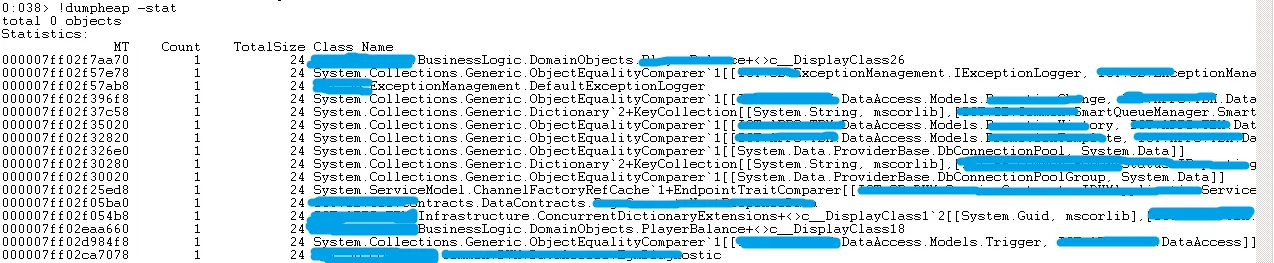 好的消息是,进程还活着,虽然不再进行正经的业务。此时,祭出神器 WinDbg,尝试看看内存中有什么。