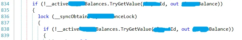 这里__activeXXX是一个ConcurrentDictionary,这里已经进行了DoubleCheck检测,也就是获得锁的线程需要检测是否该ID已经在其他线程中增加了。但调用这个ObtainXXX方法的代码有8处,并且在不同的业务规则中,所以确实可以发生在不同的SmartQueue中的线程中,也验证了上面的猜测。