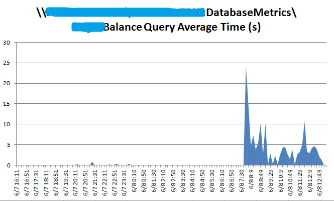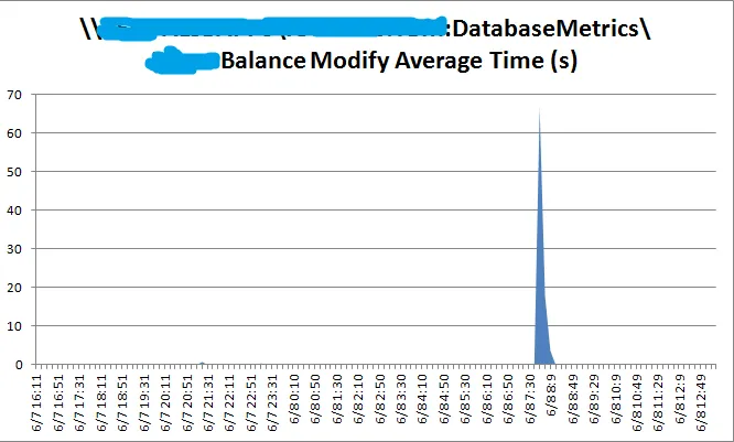 发现在发生故障之前,CRUD操作均在0.1秒以下。在发生故障的那个时间点,针对Balance表的Insert操作的时长已经达到了60秒的量级,而Select操作也已经平均在5秒以上。