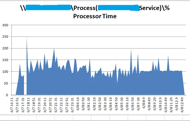 基于在测试之前已经准备好了 PerformanceCounter 记录,从报表数据来看,CPU 使用率不高,并且仍然在偶尔活跃,可以猜测只是部分业务 Block,而非全部。