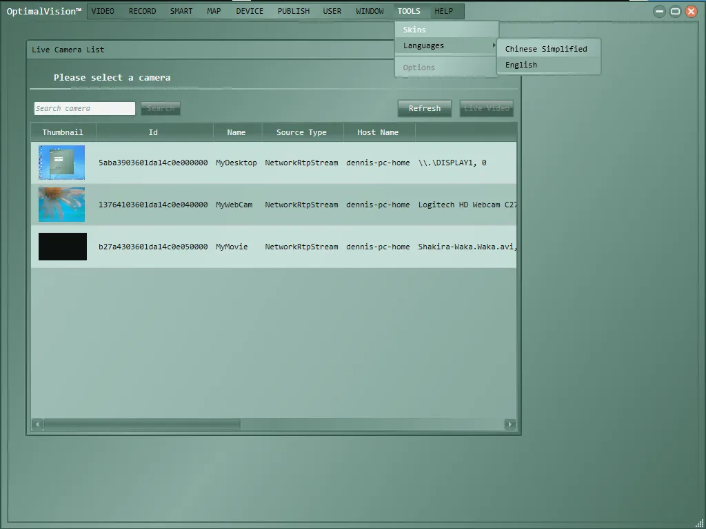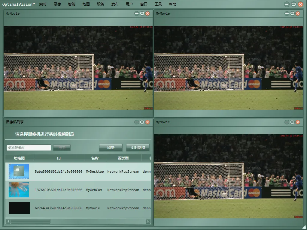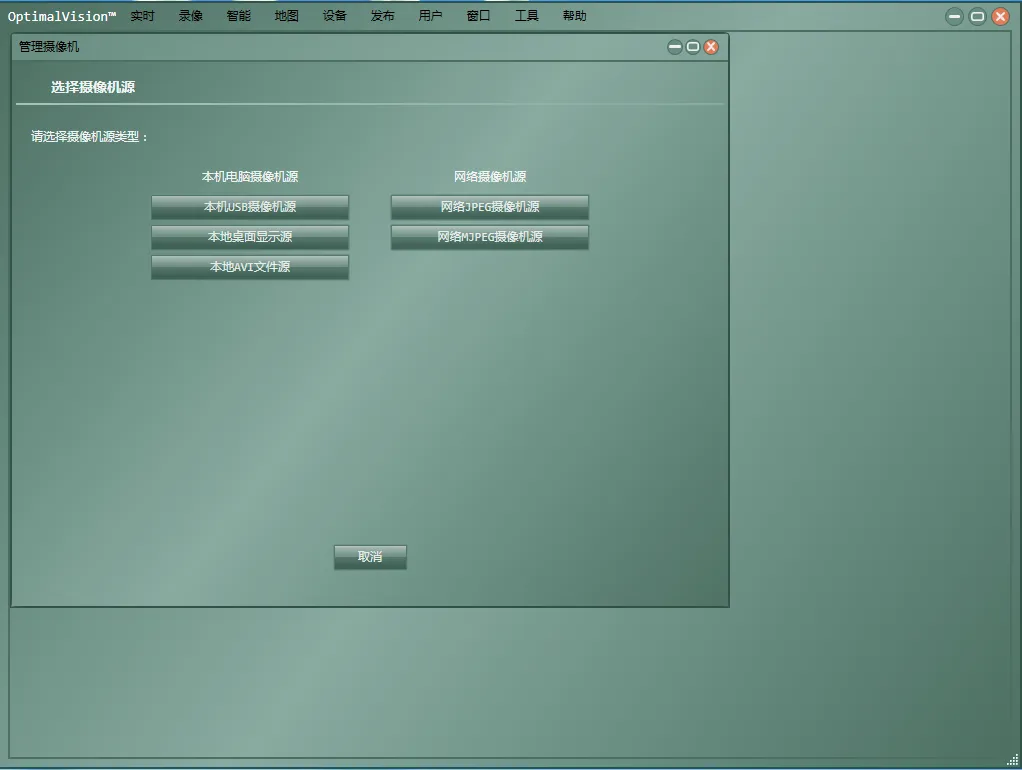 - 系统支持连接USB摄像头、WebCam、JPEG摄像机、MJPEG摄像机等。