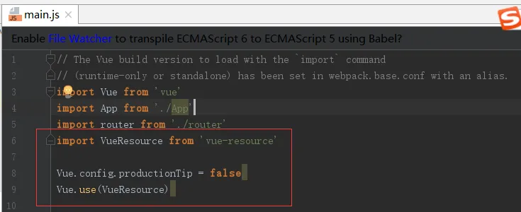 3. 然后在main.js 中加入对其的使用,如下图