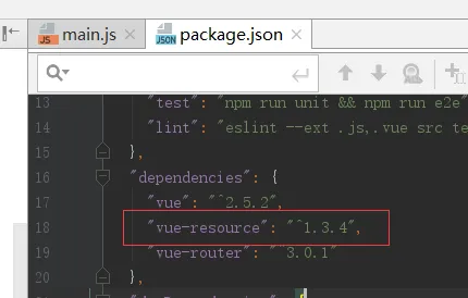 2. 安装好之后,会在package.json文件中自动加入vue-resource的版本