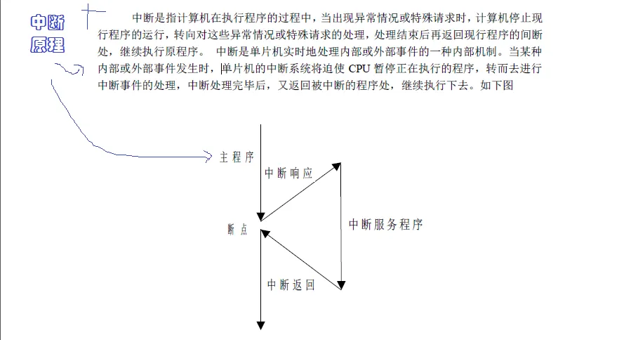 单片机内部的中断模块在每个CPU周期都查询各个中断源的状态,当其发生预期的中断事件时,通知CPU将程序跳转到中断服务程序所在的程序存储器(ROM)地址。该地址称为中断向量。