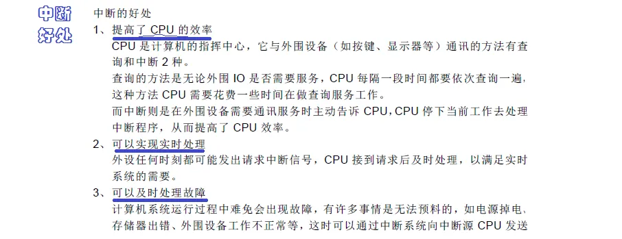 中断的实质仍然是查询,只是不需要用户程序查询,不占用CPU运行时间而已。