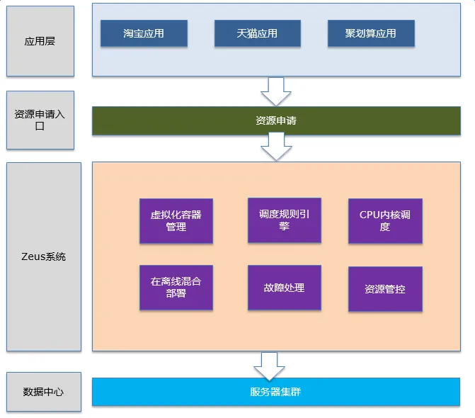 Zeus是一个资源调度系统,它对数据中心的服务器资源进行统一的调度和分配。它的主要功能包括: