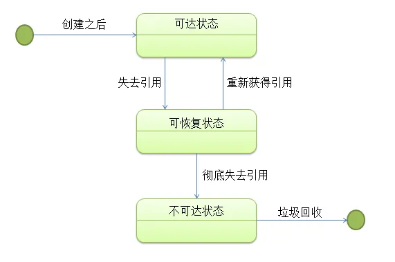1)可达状态:在一个对象创建后,有一个以上的引用变量引用它。在有向图中可以从起始顶点导航到该对象,那它就处于可达状态。