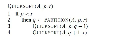 第2 行:其实就是一个问题分解的过程,从数组中选一个元素q(可能是任意选择的,也可能存在其他的选择方式);