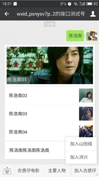 测试时可以尝试取消关注公众账号后再次关注,则可以看到创建后的效果。