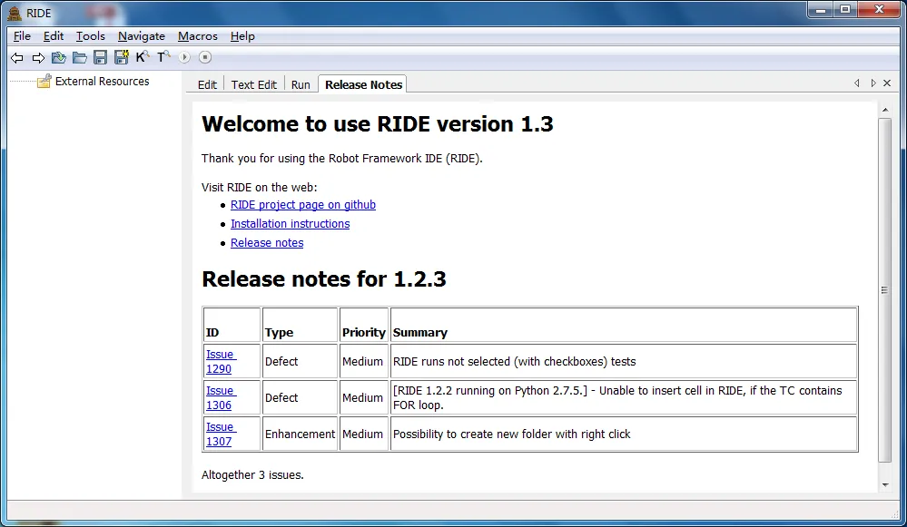 在你安装好RF-ride之后,桌面就会生成一个RIDE图标。双击启动,界面如下: