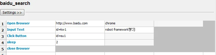 下面我们就一步一步的创建第一条用例,至于细节不多解释,只是对RF框架写用例有个感性的认识。