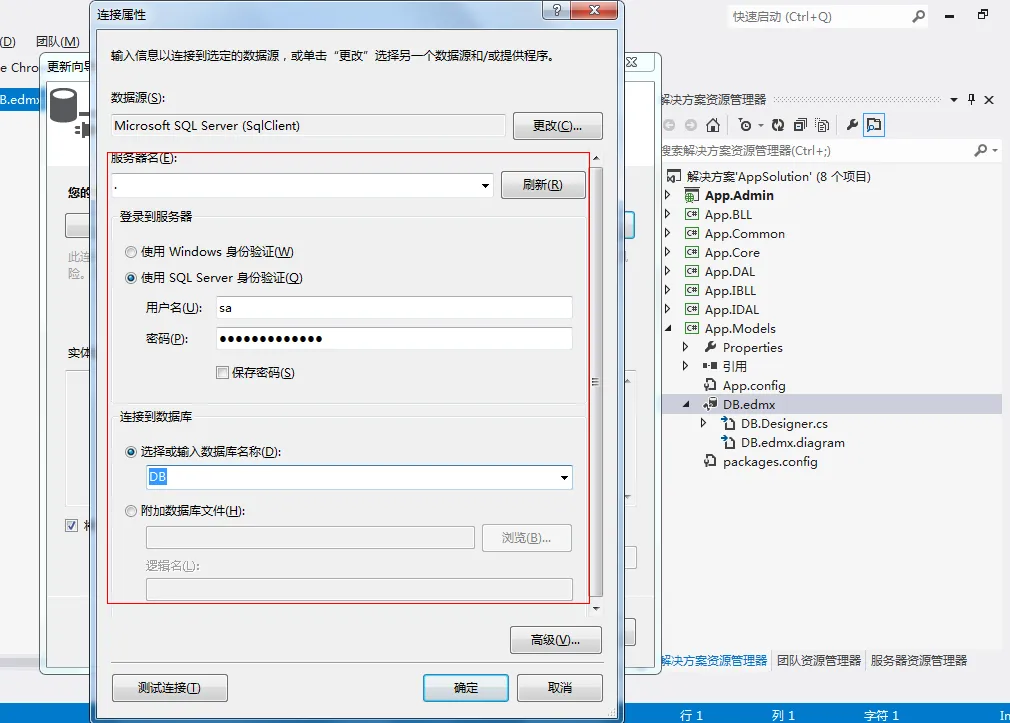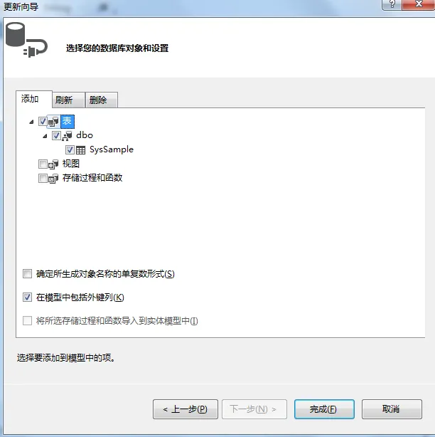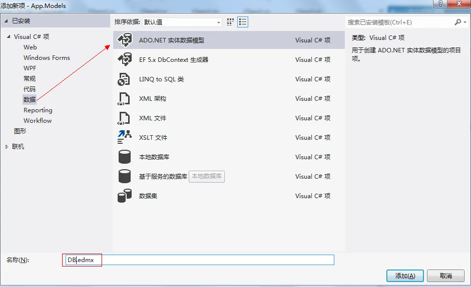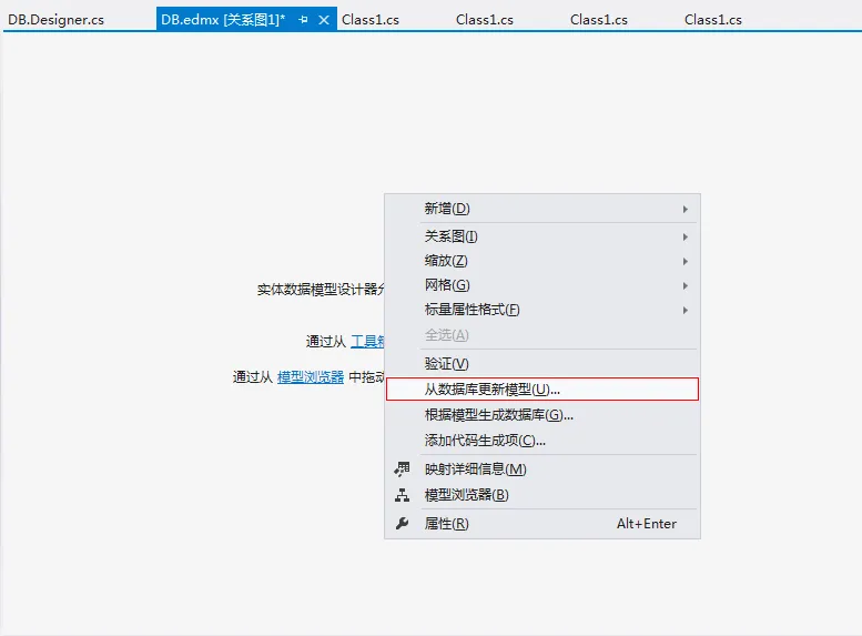 选择空的模型即可,后面我们创建数据库之后在来添加实体(表、存储过程等)