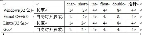 从上面可以发现,在windows(32)/VC6.0下各种类型的变量的自身对齐参数就是该类型变量所占字节数的大小,而在 linux(32)/GCC下double类型的变量自身对齐参数是4,是因为linux(32)/GCC下如果该类型变量的长度没有超过CPU的字长, 则以该类型变量的长度作为自身对齐参数,如果该类型变量的长度超过CPU字长,则自身对齐参数为CPU字长,而32位系统其CPU字长是4,所以 linux(32)/GCC下double类型的变量自身对齐参数是4,如果是在Linux(64)下,则double类型的自身对齐参数是8。